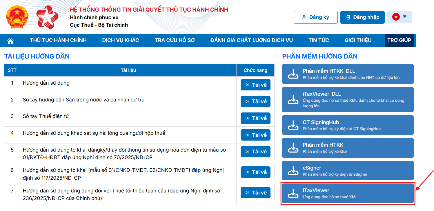 Bước 02: Kích chọn mục "iTaxViewer - Ứng dụng đọc hồ sơ thuế XML" để tải về phiên bản mới nhất.
